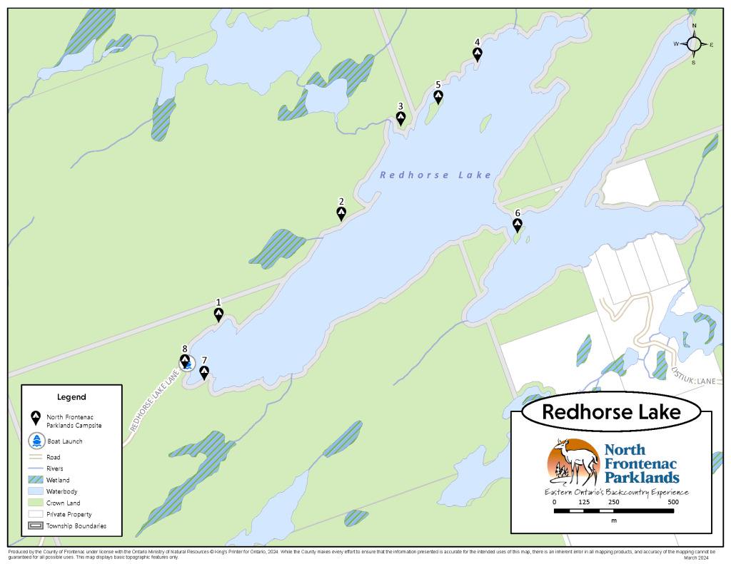 Redhorse Lake is located off of the Arcol Road in a nicely treed environment, where you will find piece and quiet…..just you and nature! The Lake consists of two basins of water connected by a narrows and is one of the smaller lakes in the Parklands Program. It is home to 8 campsites that are nicely situated throughout the lake. Out of the 8 campsites, 7 of them are water accessible and require watercraft to access the sites. There is 1 vehicle accessible site (aka drive-in site) that is located to the right of the public boat launch.